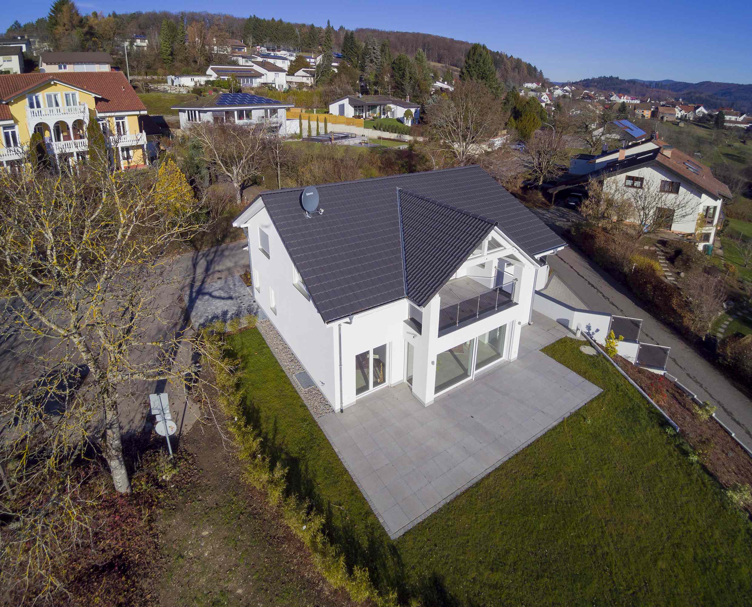 Dieses besondere Einfamilienhaus zeichnet sich durch seine klare Linienführung und exklusive Gestaltung aus. Die Loggia im Obergeschoss ist ein besonderes Schmuckstück, da sie zusätzlichen Wohnraum im Freien mit einem unbeschreiblichen Ausblick schafft – der perfekte Rückzugsort mit Blick ins Grüne. Wir haben bei diesem Bauvorhaben höchsten Wert auf exklusive Details und eine durchdachte Architektur gelegt. Von der ersten Skizze bis zur Schlüsselübergabe war unser Anspruch, ein modernes, stilvolles Zuhause zu schaffen, das den individuellen Wünschen der Bauherren gerecht wird.